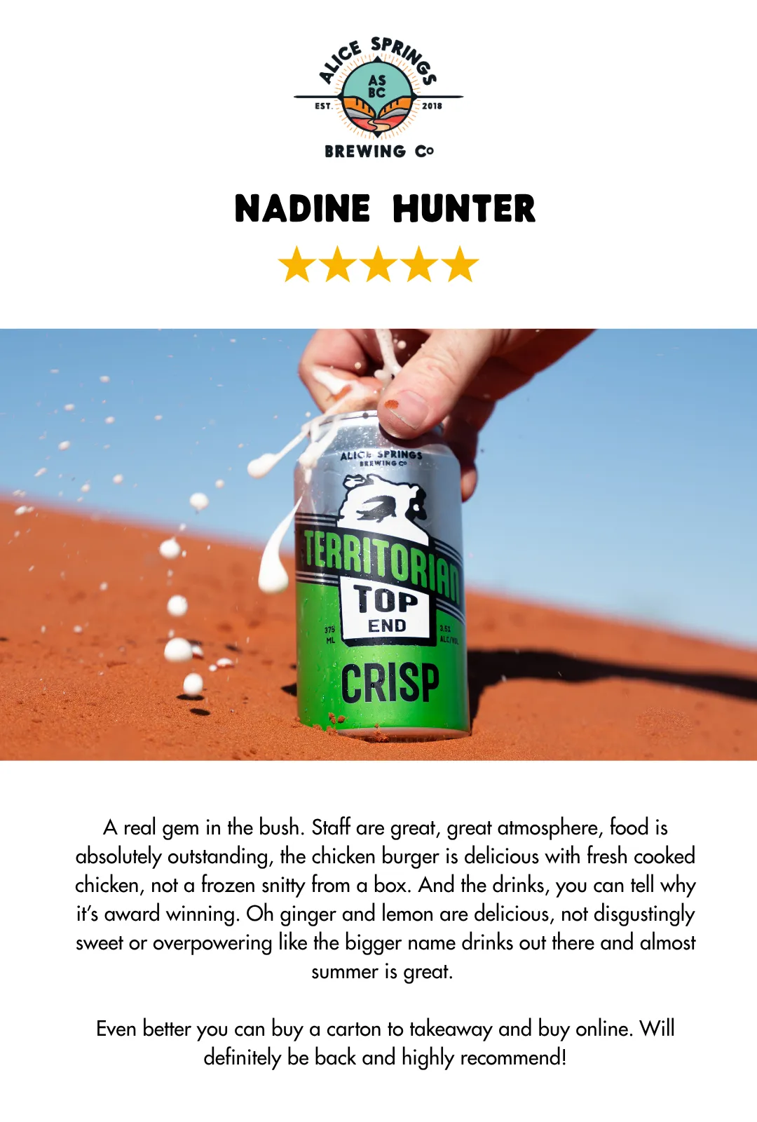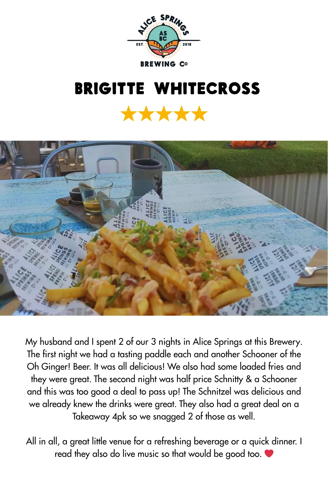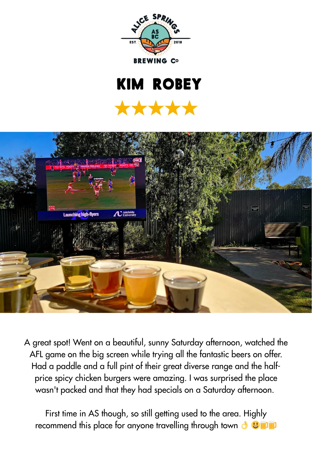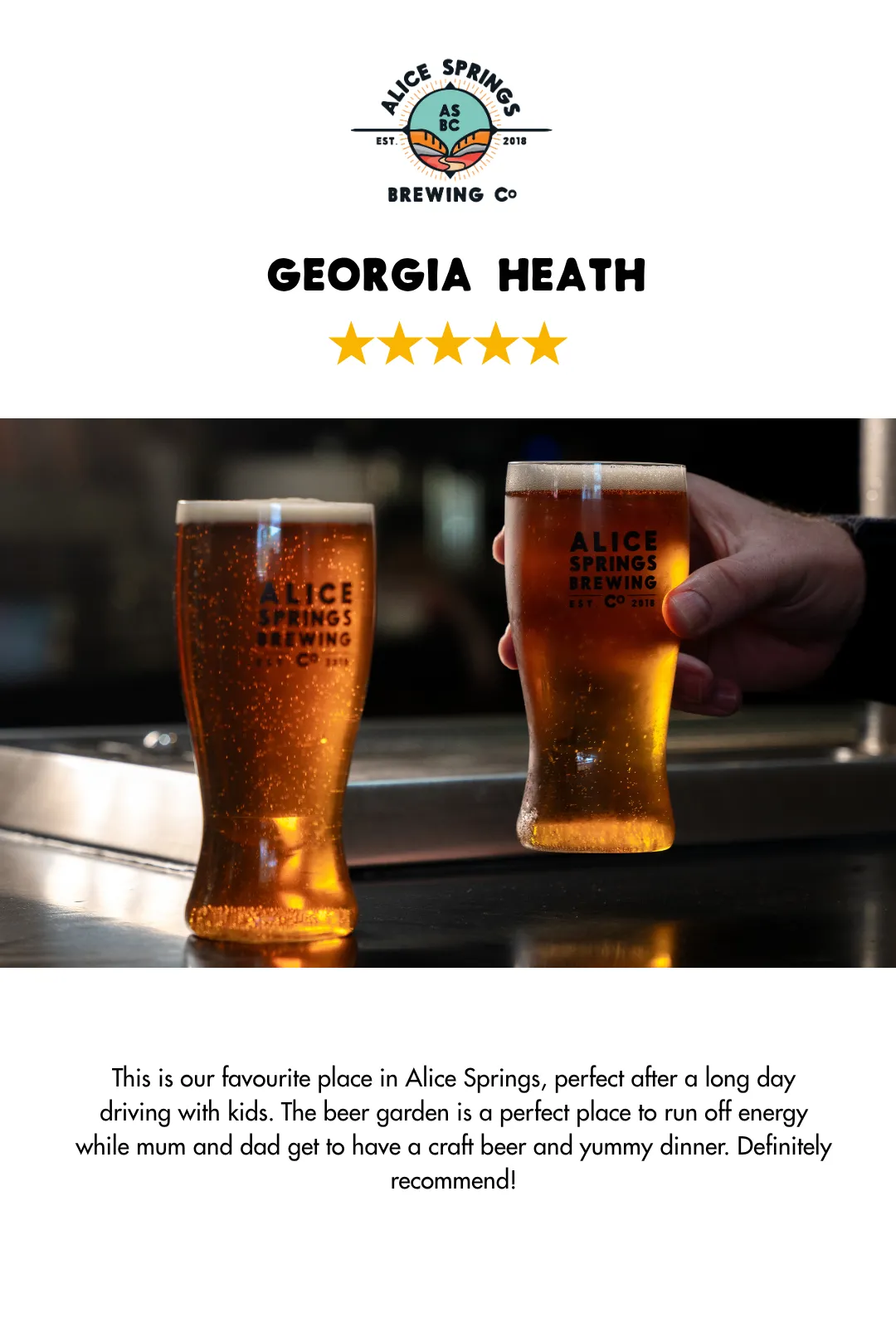We make the beer here. That’s kind of the whole point. These are all brewed with this place in mind — the heat, the dry air, and that feeling when you’re ready for something cold. There’s a mix on tap — easy drinking ales, something a bit darker, and a few rotating options — all poured fresh and kept just how it should be. And with food like this? It just works. Pizza, wings, burgers… then a fresh pint poured right here on-site. Hard to beat that.